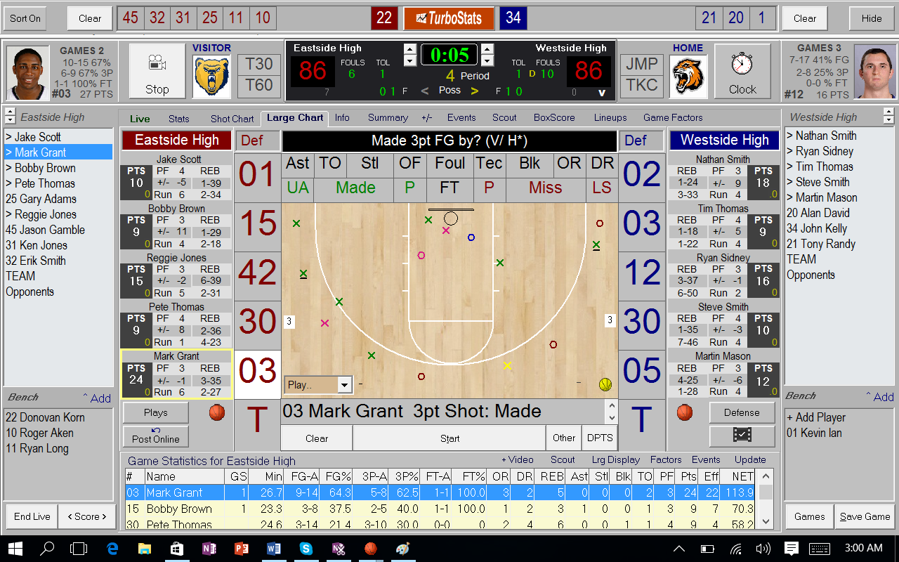 New Updated Live Scoring Screen with multiple floor choices and larger shot symbols (X and O).