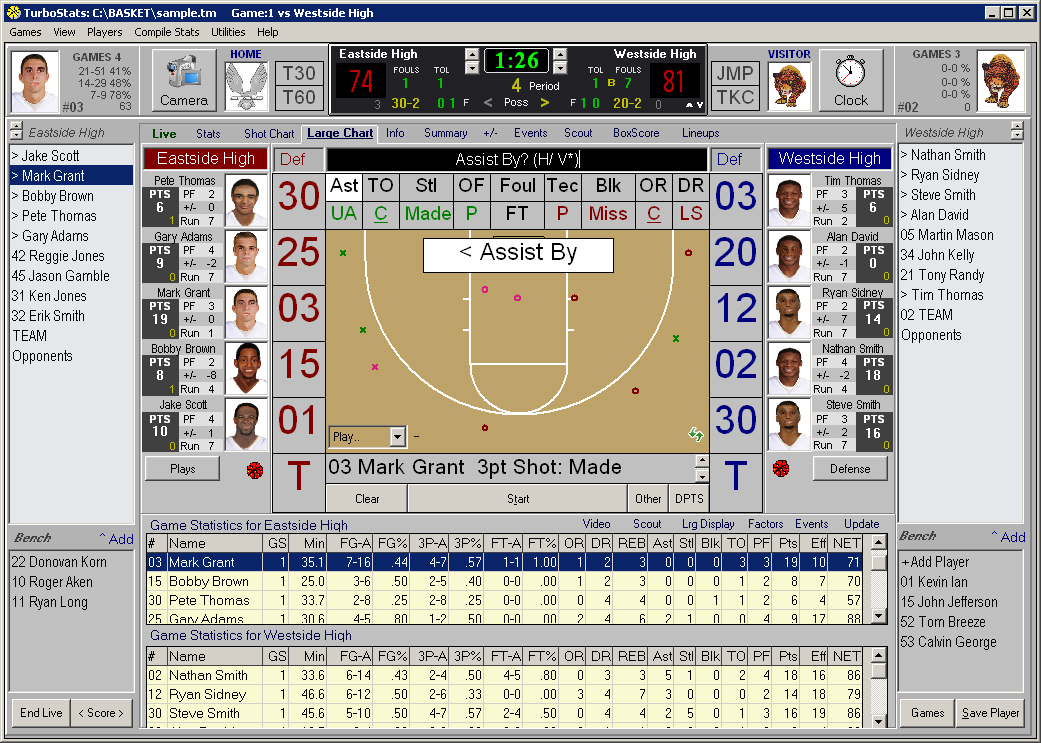 | Main Screen Pricing Team Form Career Stats Animated Playbook Drag & Drop Court Layout Stat Viewer Stat Filter Electronic Order Form |
