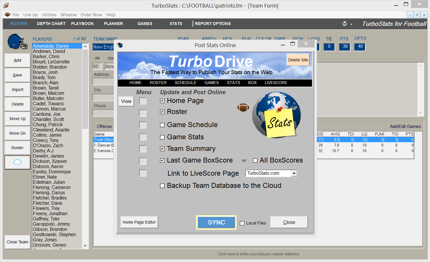 TurboScout and Sideline Pass System - Wirelessly uses data from live scoring and previously scouted games. Broadcast live stats and photos to coaches on the sidelines. Automatically displays tendencies after every play. Free video replay option also works with other replay systems. No Internet required.