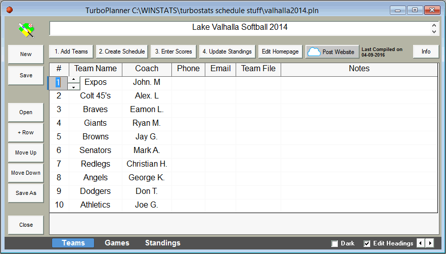 league...Enter your teams and TurboStats will make a schedule for you. Enter the game